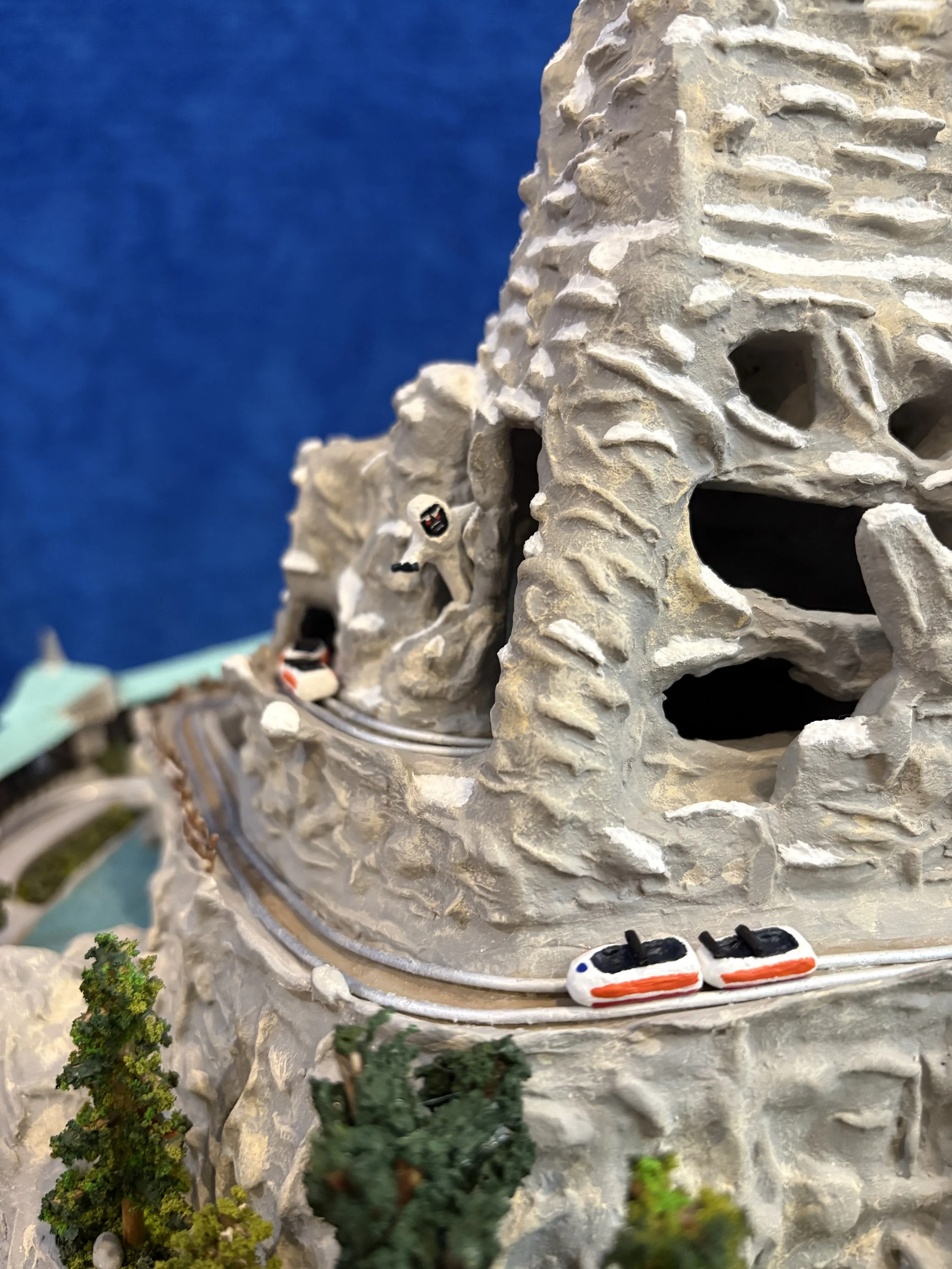 Some snippets of the Mountain from a variety of angles. I tried to feature the smaller details that are more difficult to see when you are looking at the piece as a whole. Harold, the abominable snowman, stands 3/4 of an inch tall, and each individual bobsled in just under 1/2 of an inch.